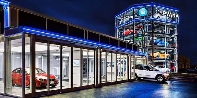 This new unique structure located on Interstate 65 Tennessee is a five-story glass tower filled with used cars. The building, a fully-automated vending machine for cars, is owned by online auto retailer Carvana and is the first of its kind in the country. The fast-growing Arizona-based company is bringing the concept to many more markets.
