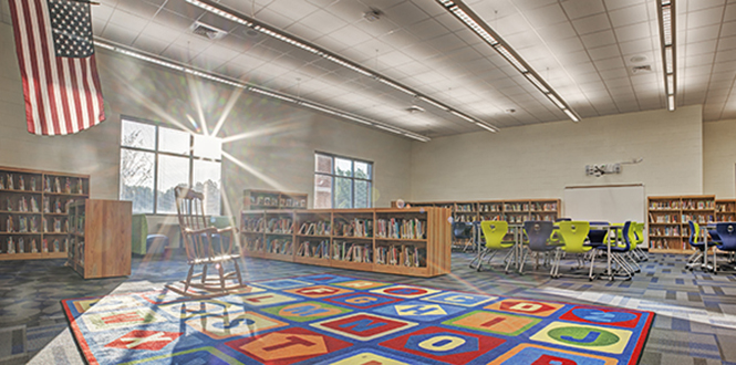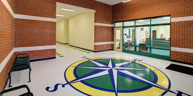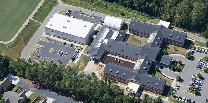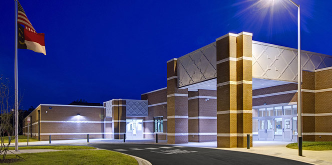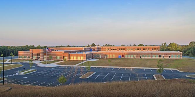 This 86,000 square foot masonry load-bearing elementary school was designed and constructed for the Charlotte-Mecklenburg School System. The design includes a high school regulation size gymnasium with bleacher seating for 350, a scoreboard, acoustical sound absorption panels, basketball practice courts, stage and storage areas, an alternate volley ball court, and hard wood athletic flooring. The gymnasium was constructed for additional use by the Mecklenburg County Parks and Rec Department and the school gymnasium’s entrance is designed to accommodate the patrons of an adjacent municipal park.