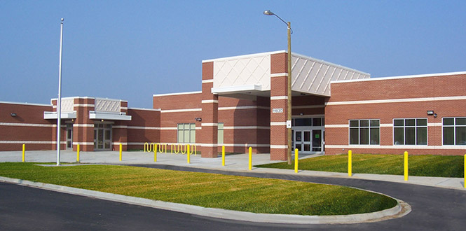 A new elementary school for 800 students. Work includes a load-bearing masonry structure with metal deck, 4-ply built up roof. The building is fully sprinklered with 39 classrooms, a cafeteria, multi-purpose room, media center, associated administration offices, parking, loading, and play areas. New utilities and site lighting, as well as an area for future mobiles are included. There is a two-story classroom wing with 12 classrooms per floor, an elevator and open stairwells.