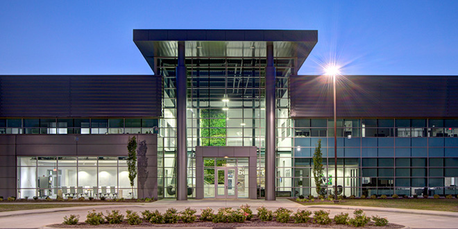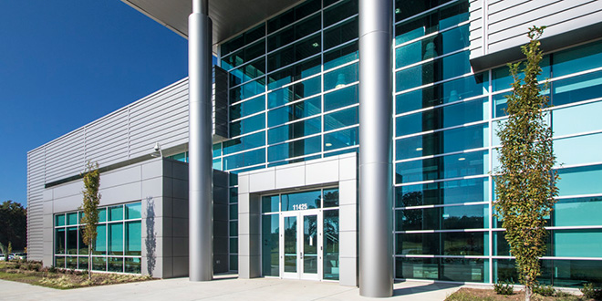 173,000 SF facility located on a 98-acre parcel of wooded forest and farmland in Huntersville, NC. Houses administrative areas, manufacturing, R&D lab, clean rooms, fitness center and storage. The design utilizes glass curtain wall and insulated metal panel, along with insulated precast concrete construction, and the contemporary design ties Bürkert, USA to its German roots with style.