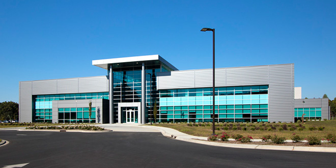 This new 105,000 SF, concrete tilt panel, plastic extrusion plant was constructed in the South Ridge Business Park in Bessemer City, NC. The building houses plastic extruders and a warehouse area, along with an 11,000 SF business office. The headquarters includes labs, silos and specialized equipment for process, and the facility will be serviced by rail.