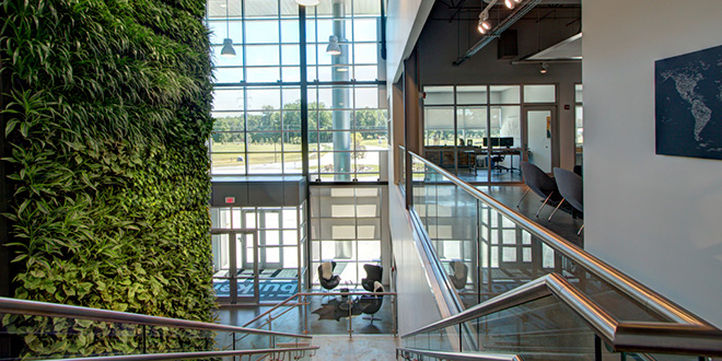 Environamics new facility that was originally designed by WHN Architects in 2000 that included 8,000 SF of office space, 10,000 SF of manufacturing area, and 36,000 SF of warehouse space. The renovated facility included a 40,000 SF warehouse addition and site work. The office was a completely renovated using various Environamics office partition systems creating a showroom to highlighting the office upfit products they manufacture. The office was designed to meet LEED principles.