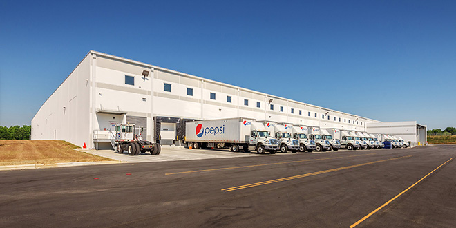 This new distribution facility is approximately 205,000 SF in size, including 17,000 SF of office space, and the building is load-bearing, concrete tilt-wall construction with conventional steel framed roof. PBV is the largest, privately-held bottler for Pepsi products in North America. Their products comprise some of the world’s most recognized consumer brands including Pepsi, Aquafina waters, Lipton teas, and Gatorade.