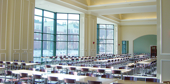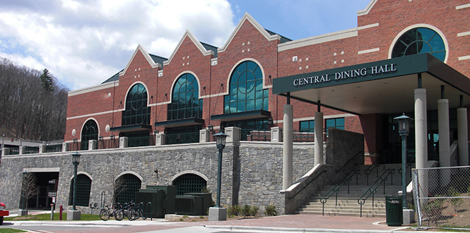 This 93,000 sf New Central Dining Facility for Appalachian State University seats 1,800 and is located adjacent to Boone Creek in the center of campus. The facility is comprised of three levels. The basement, or service level, has loading docks, a bakery, walk-in refrigerators and freezers, catering services and other support spaces. The main level is comprised of the main dining area which seats approximately 1,200 and includes a Faculty Dining Room. The main dining area is adjacent to the servery and main kitchen.