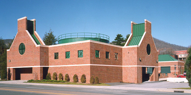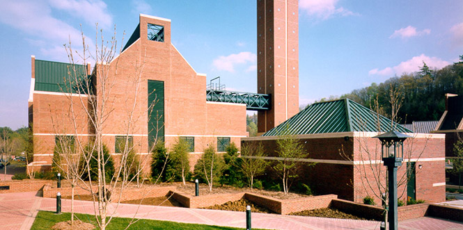 The new central boiler plant replaces an aging facility, which lacked the capacity to keep up with future campus growth. The new facility, located on an adjacent site, is designed to accommodate anticipated future growth needs, improve air quality and address flood way issues, which currently impact the existing plant. In addition, the new facility is designed to aesthetically minimize the impact of a facility of this nature on the central campus. It is designed to be compatible with adjacent campus buildings while concealing much of its mechanical nature. The 180′ tall stack has been enclosed to suggest the image of a bell or clock tower. The existing fuel oil tank has also been screened from view by a new brick masonry enclosure, which harmonizes with the new boiler plant. Other improvements include an enhanced streamscape / bike way and a new quad / plaza area.
