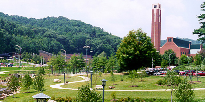 The project consisted of a new baseball stadium with a seating capacity of 600, a new main campus entry and a streamscape with bike paths and pedestrian walkways. The stadium was constructed on top of a mountain above the existing football field and required extensive earthwork. The new entry road is four lanes and is elevated to tie into a widened section of Highway 321. The streamscape is constructed between the new entry road and the recently completed central energy plant. It includes bike paths, pedestrian walkways and site furniture.