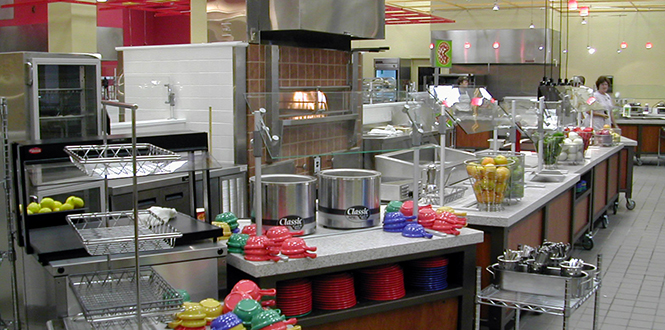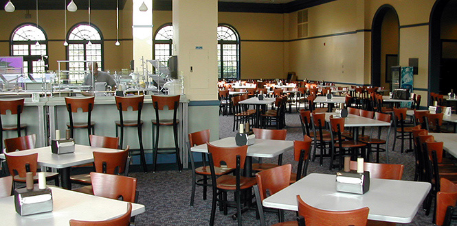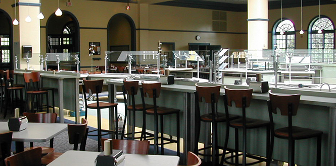 The renovation of University of North Carolina at Wilmington Wagoner Hall consisted of an approximately 9,000 square foot interior renovation of the existing kitchen, servery and dining areas. The work included removal and replacement of existing kitchen equipment, removal and replacement of quarry tile floors, removal and replacement of servery and exhibition cooking equipment, new kitchen exhaust hoods, new ceilings, new lighting, new finishes, and associated plumbing, mechanical and electrical work to suit the new layout.